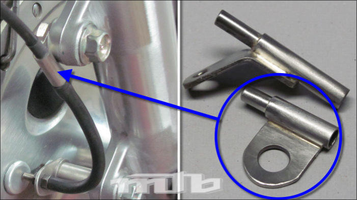 Noch eine spezielle Anwendung. In Wahrheit ist das kein Seilzug. Im Innern der Seilzughülle versteckt sich das Kabel für den Tachosensor. Die angefertigten Endkappen aus Edelstahl sind gleichzeitig die Halterungen für die Hülle und den Gegebenheiten am Fahrzeug angepasst. Keine hässlichen Kabelbinder, kein flatterndes Sensorkabel. Einem Klassiker wie der SR500 steht das gut.